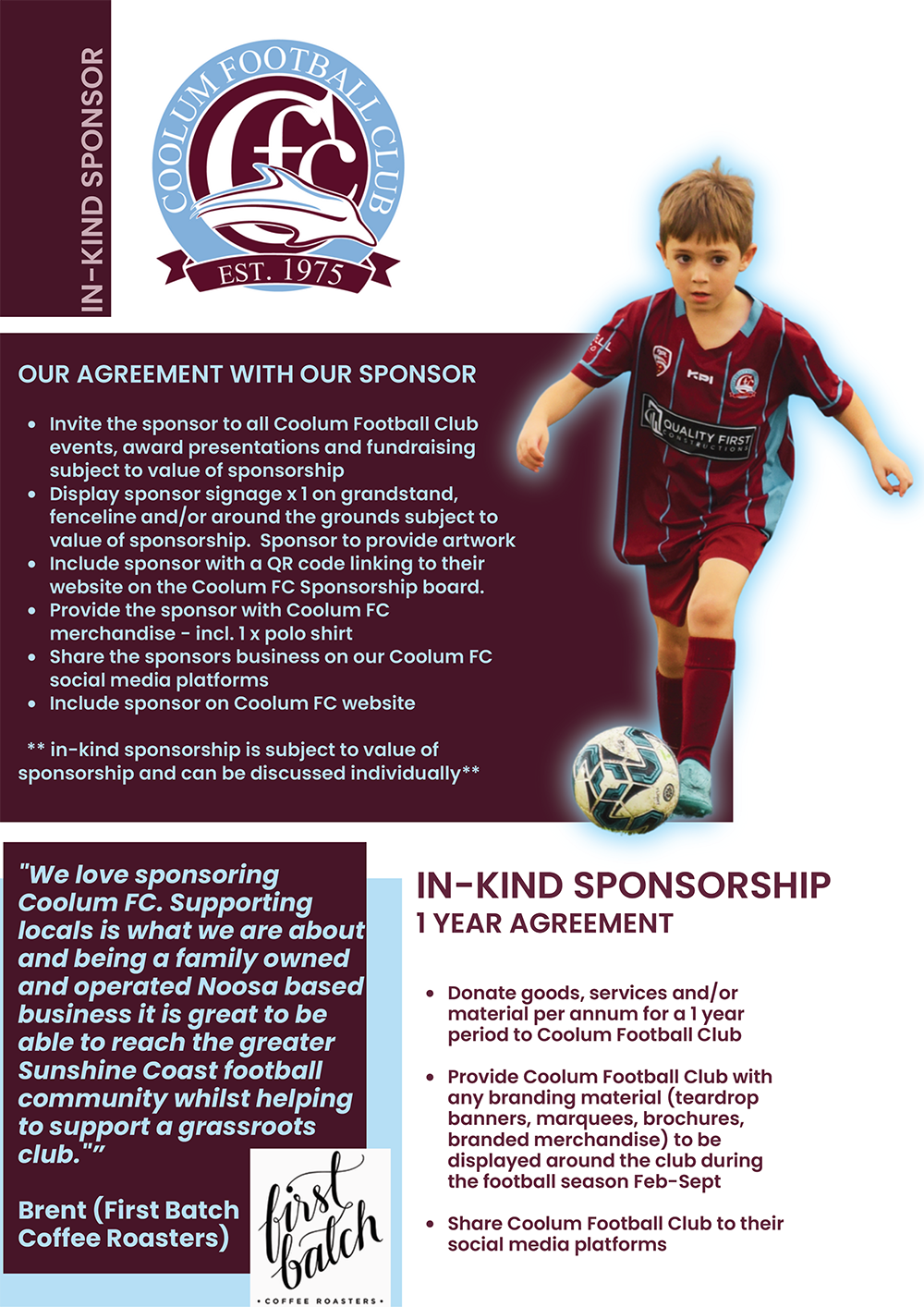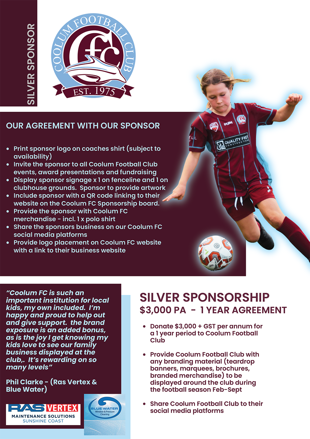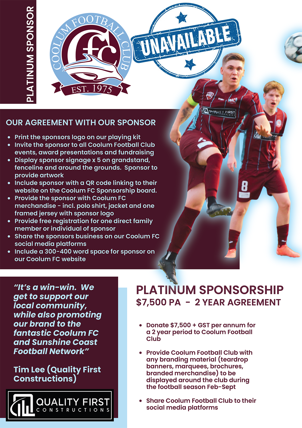 Please email sponsorcoolumfc@gmail.com if you’re interested in finding out how you can sponsor Coolum FC and get your name out there!
